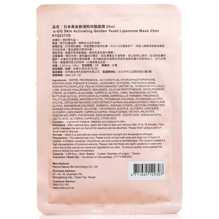 Reveal brighter, firmer skin with the Natural Beauty BIO UP a-GG Skin Activating Golden Yeast Liposome Mask. This three-in-one, time-saving treatment delivers deep hydration, improved elasticity, and a radiant complexion all in one powerful mask.