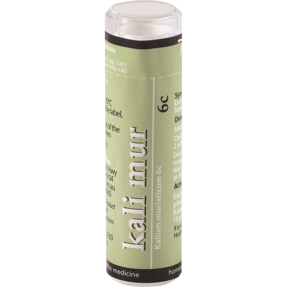 Kali mur is a tissue salt that may provide relief for symptoms where there is thick, white nasal discharges and catarrh, earache, stuffy head colds, sore throats and mouth ulcers.