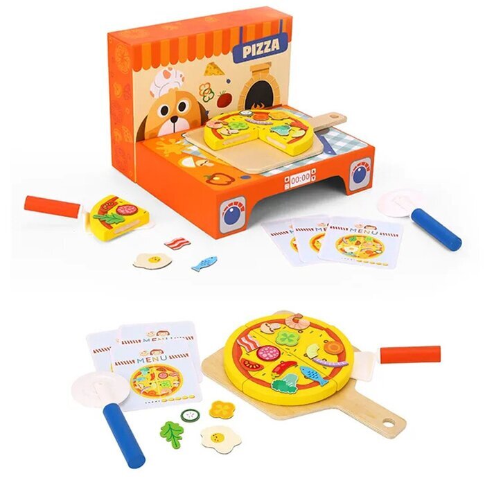 "Learning & Developmental Activity & Educational Preschool Toys - Homemade Pizza Create your own pizza's with Tooky Toys wooden homemade pizza oven! Stick your favourite toppings on the pizza, and pop it in the fire. Once it's cooked, cut it up with the pizza slicer and enjoy! The wooden pizza oven also comes with different pizza designs should you be stuck of what your pizza should look like! Age Recommendation: 3 Years + Content: Wooden Board x 1, Tools x 2, Accessories x 36"